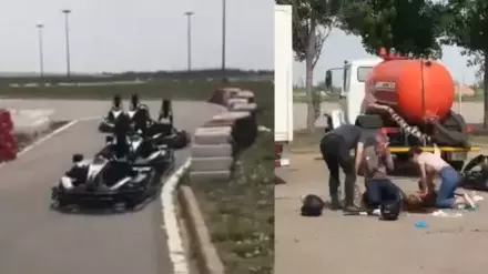 "Очевидцы отмечают, что картинг выехал за ограждение по инерции, от удара следовавшего за ним другого картинга, которым якобы управляла женщина", - сообщили в полиции.