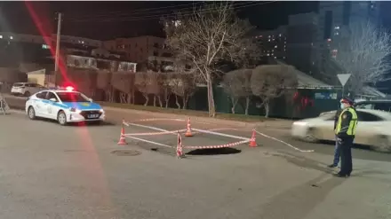 Как сообщили в акимате, провал произошел в связи "с несоблюдением подрядной организацией технологического процесса при прокладке трубы СДР 17 диаметром 300 миллиметров методом прокола". В результате коллектор ливневой канализации подмыло и образовался провал дорожного полотна.