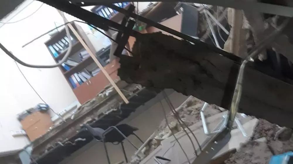 В ДЧС Актюбинской области сообщили, что вечером 1 сентября обрушилась кровля и второй этаж фонда развития предпринимателей "Даму" на предварительной площади 200 квадратных метров.