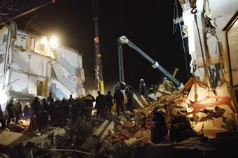 Трагедия произошла в спальном районе Евпатории в среду примерно в 23.00 по московскому времени.Число пострадавших достигло 80 человек. По предварительным данным спасателей, причина трагедии - взрыв бытового газа.