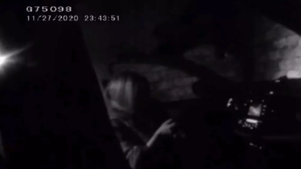 Услышав звук двигателя в гараже, полицейские разбили окно и попали внутрь. Женщина в это время находилась за рулем авто. Ее вынесли на свежий воздух из пропахшего газом гаража. Видео происшествия заснял нагрудный жетон полицейского.