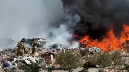 В Актобе загорелся новый полигон твёрдых бытовых отходов. Из-за сильного ветра тушение осложнено, а густой дым доносится до жилых районов города, передаёт корреспондент Tengrinews.kz.