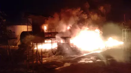 "Площадь пожара уточняется. Оперативные действия направлены на снятие угрозы взрыва и недопущения воспламенения резервуаров", - сообщил пресс-служба ведомства.