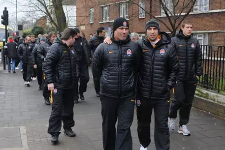 Игроки "Шахтера" прибыли в Великобританию для участия в первом матче 1/16 Лиги Европы против лондонского "Фулхэма", который запланирован на четверг, 18 февраля. Во вторник они провели тренировочные занятия в одном из пригородов британской столицы, после чего отправились прогуляться по Праге. В Harrods футболисты планировали приобрести сувениры из Праги родным и близким. Однако сотрудники магазина отказались пустить игроков, так как у них вызвало подозрение большое количество людей, одетых в одинаковую одежду.