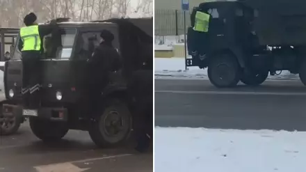 В Нур-Султане водитель КамАЗа прокатил полицейского на кабине, передает Tengrinews.kz.