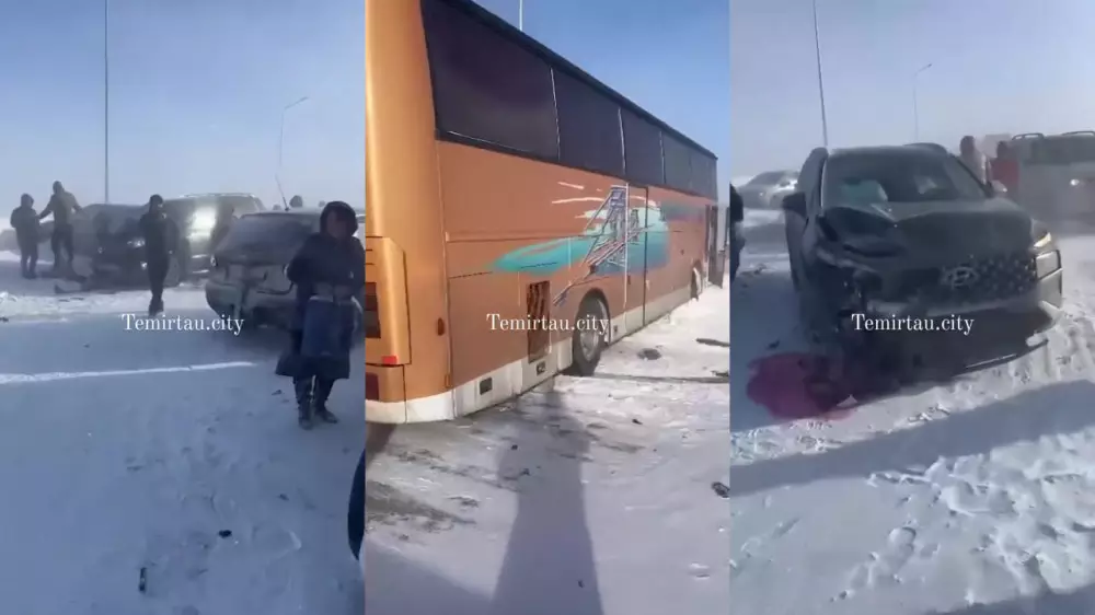 "26 января, около 15:00, из-за ухудшения погодных условий на трассе Караганда - Темиртау произошло ДТП с участием рейсового автобуса, следовавшего по маршруту Алматы - Астана и 16 легковых авто. В результате аварии двое граждан госпитализированы в больницу Темиртау. При ухудшении погодных условий просьба воздержаться от дальних поездок", - сообщил первый замначальника департамента полиции региона Курмангали Исмагулов.