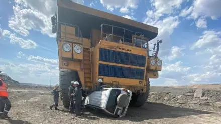 "Парни приехали чинить на карьер кондиционер. Машину поставили возле самосвала, и она попала в "слепую зону". Когда самосвал наехал на автомобиль, мужчины стали громко кричать. К счастью, они не пострадали", - сообщили авторы публикаций.