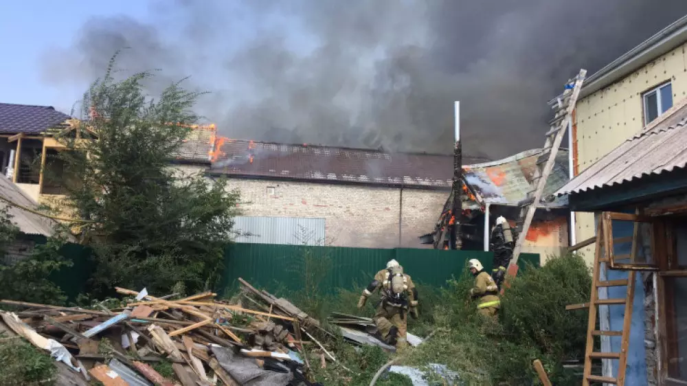 Как сообщили в Департаменте, на проспекте Назарбаева, 115 произошло возгорание комплекса каскадного типа - 2-х и 1-уровневые здания. Сначала загорелась кровля оружейного магазина "Оружейная палата", с переходом огня на кровли близ расположенного здания СТО "Юг" и 8 частных жилых домов на предварительной площади более 2500 квадратных метров. Также огнем повреждены рядом припаркованные два легковых автомобиля.