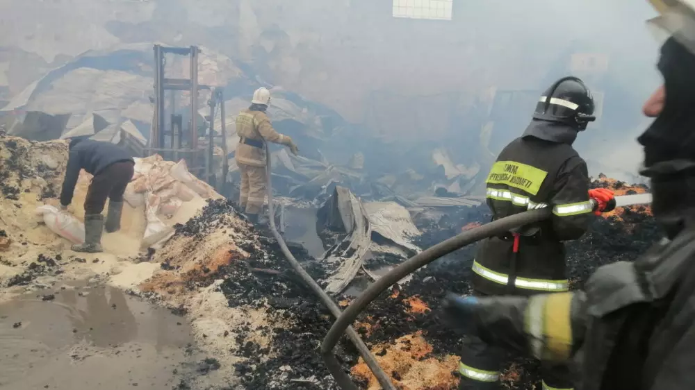 В ДЧС выясняют причину пожара на рисоперерабатывающем заводе в Кызылординской области, передает корреспондент Tengrinews.kz.