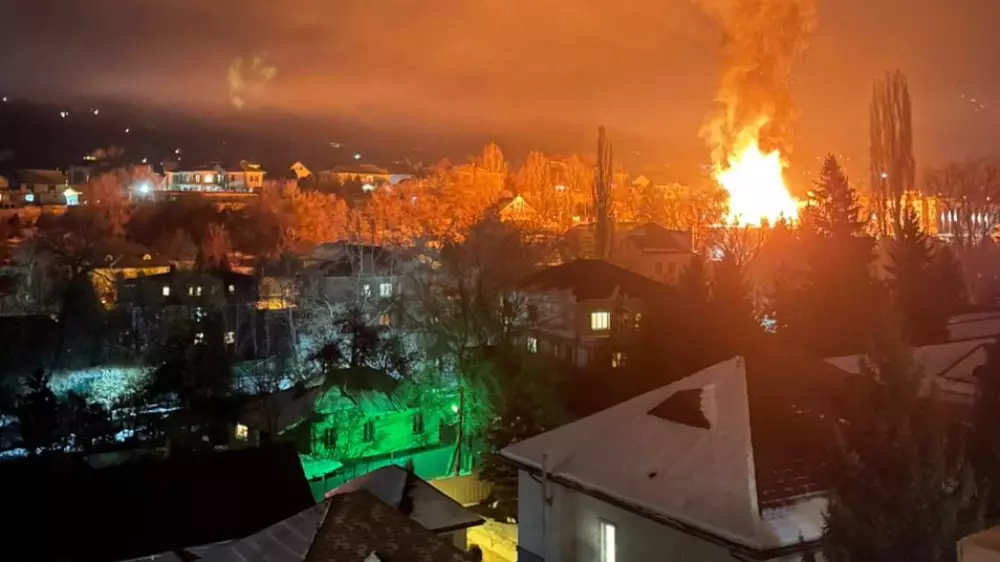 По информации ДЧС Алматы, пожар произошел по адресу: улица Таттимбета, дом 88 В. "Силы и средства ДЧС выехали по повышенному рангу. По прибытии открытым пламенем горели мансарда и кровля двухэтажного здания, создалась угроза перехода огня на расположенный рядом эркер.