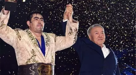 Бейбит Ыстыбаев во второй раз выиграл "Қазақстан Барысы" Нурсултан Назарбаев и Бейбит Ыстыбаев. Фото "Акорды"