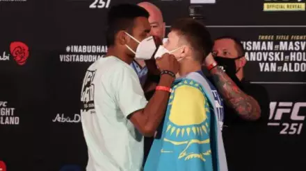 Перед этим соперники прошли взвешивание. По его итогам Пайва не уложился в лимит наилегчайшей категории и лишился 20 процентов гонорара, которые перейдут Жумагулову.