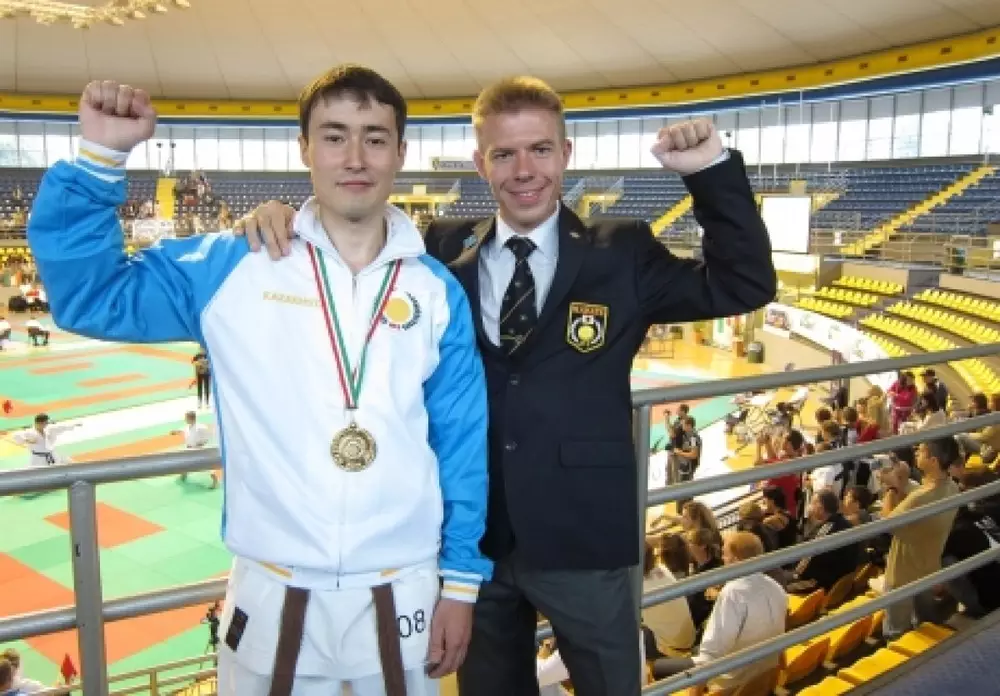 Казахстанский каратист Арман Молданьязов стал первым казахстанским чемпионом Европы по каратэ версии JKS, передает Vesti.kz. Чемпионат проходил в Италии, в одном из крупнейших спорткомплексов Турина. Команда из Казахстана под руководством Сергея Корнеева (3-й дан) впервые приняла участие в столь крупных соревнованиях. Молданьязов показал лучший результат чемпионата, заняв первое место в ката (категория +19, коричневые пояса), и завоевал титул чемпиона Европы. В финале ему противостояли опытные спортсмены из Греции и Венгрии, но техничное исполнение формальных комплексов Молданьязова было по достоинству высоко оценено судьями, что и позволило ему одержать убедительную победу. Позже в кумитэ (категория +18, коричневые пояса) казахстанец завоевал еще одну медаль, но на этот раз уже бронзовую. Отметим, что теперь сборной Казахстана и ее тренеру Сергею Корнееву предстоит значительная работа по подготовке спортсменов к чемпионату мира в следующем году в Японии.