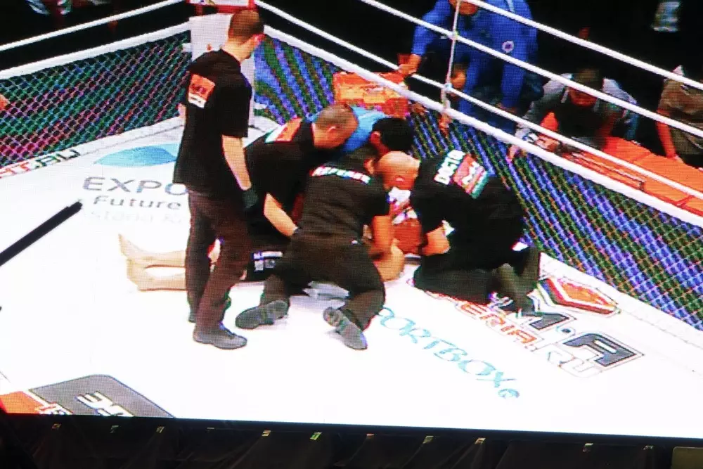 Спортсмен получил тяжелый нокаут от своего оппонента - представителя Азербайджана Анвара Амирли, который также дебютировал в профессиональной серии. В течение нескольких минут врачи на ринге приводили бойца в чувства, после чего его забрала в больницу машина "Скорой помощи".