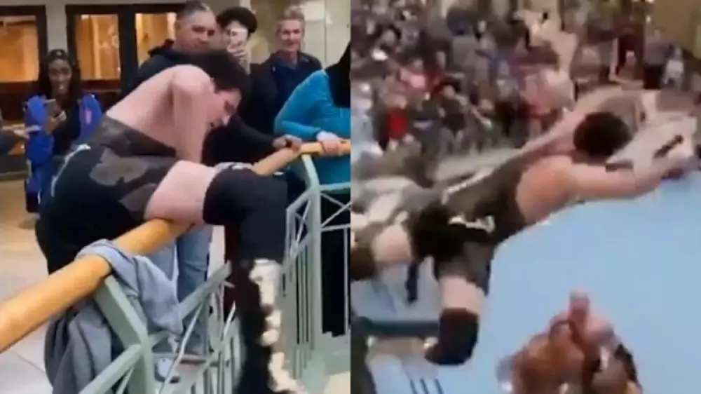 Рестлер Перри Хоухерст, выступающий под псевдонимом PJ Hawx, исполнил прыжок со второго этажа торгового центра в США. Видео спортсмен опубликовал в своем Twitter, передает Tengrinews.kz.