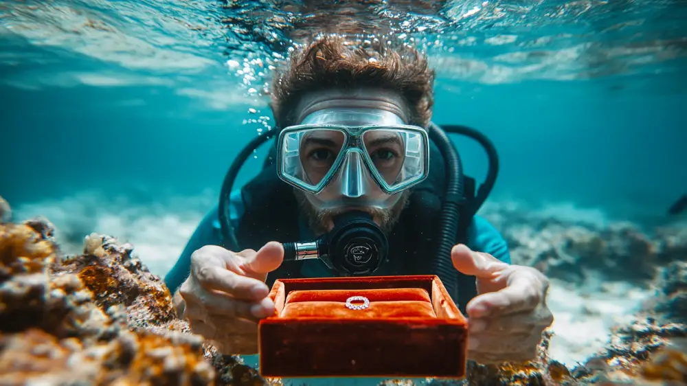 В ней было написано: "Я не могу задержать дыхание достаточно долго, чтобы рассказать тебе все, что я люблю в тебе. Но… все, что я люблю в тебе, я люблю все больше с каждым днем!" Затем мужчина перевернул записку, и на обратной стороне было написано: "Ты выйдешь за меня замуж?"