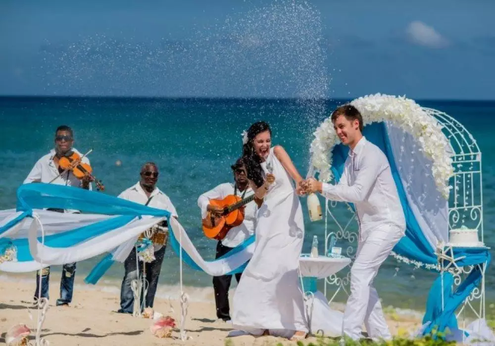 Церемония в карибском стиле - это веселый праздник, который может сопровождаться ярким шоу, устроенным местными жителями. По сути, это церемония, поставленная в пиратском стиле. Кроме пляжа, местом проведения свадьбы можно выбрать открытую беседку, лобби-бар, католическую церковь или конференц-зал. Из экзотических видов бракосочетаний предлагается церемония в джунглях (она мало чем отличается от пляжной, кроме антуража) и под водой. Также можно просто арендовать яхту, и свадебная церемония пройдет во время морской прогулки.