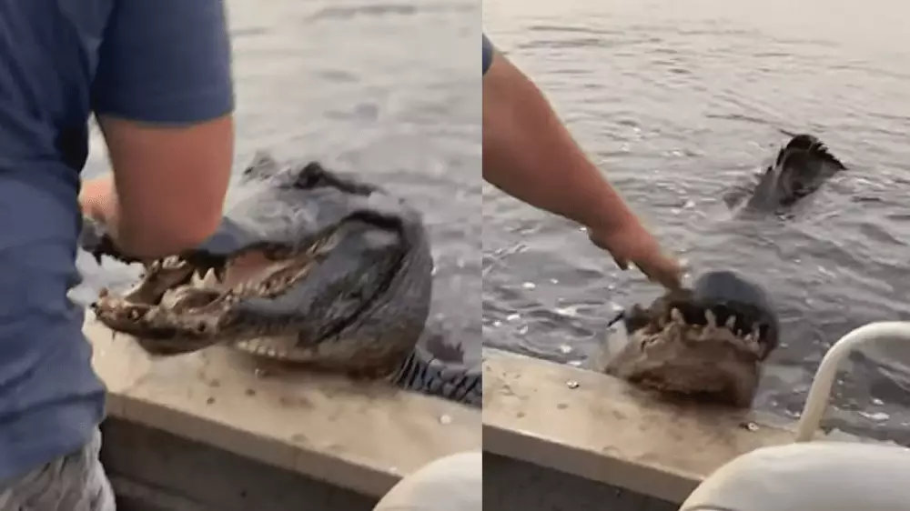 "Это страшно. Это чертовски страшно!" - заявили они, отмечая храбрость владельца лодки, который спокойно вытолкнул аллигатора назад в воду.
