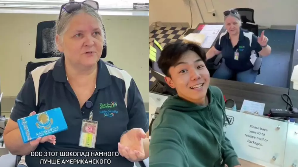 "Я нахожусь в городе Вильямсбург. Приехал сюда на лето по программе Work & Travel. Работаю в парке аттракционов и развлечений. Здесь я заселился в общежитие, со мной живут также ребята, приехавшие по этой программе. Когда мы заезжали, на ресепшене сидела очаровательная женщина, она помогла нам, распечатав пару лиcтов. Мой друг протянул ей в подарок казахстанский шоколад. Она очень обрадовалась, ее реакцию можно увидеть на видео. Ролик был снят спонтанно", - отметил Арыстан.