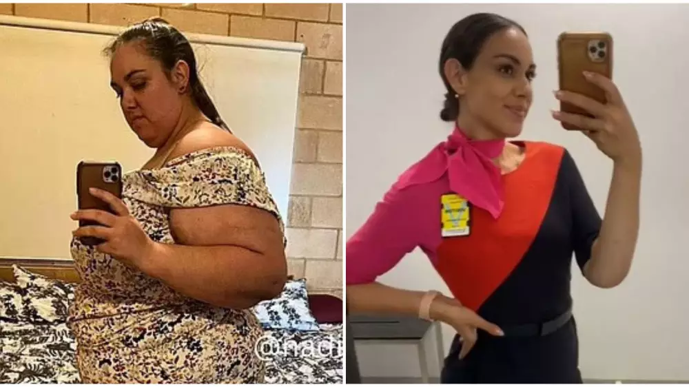 "Операция бариатрической хирургии помогла женщине избавиться от более 100 килограммов веса. Теперь она работает бортпроводницей, как и мечтала всю жизнь. Надин ограничивает себя в твердой пище и соблюдает строгую диету", - рассказывает издание.