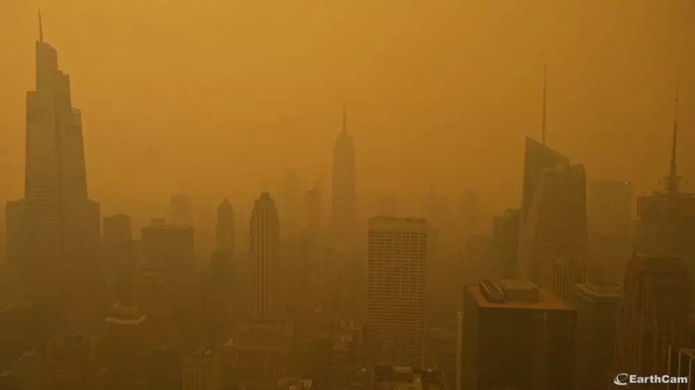 A video showing the wildfire smoke from Canada that has reached New York City.