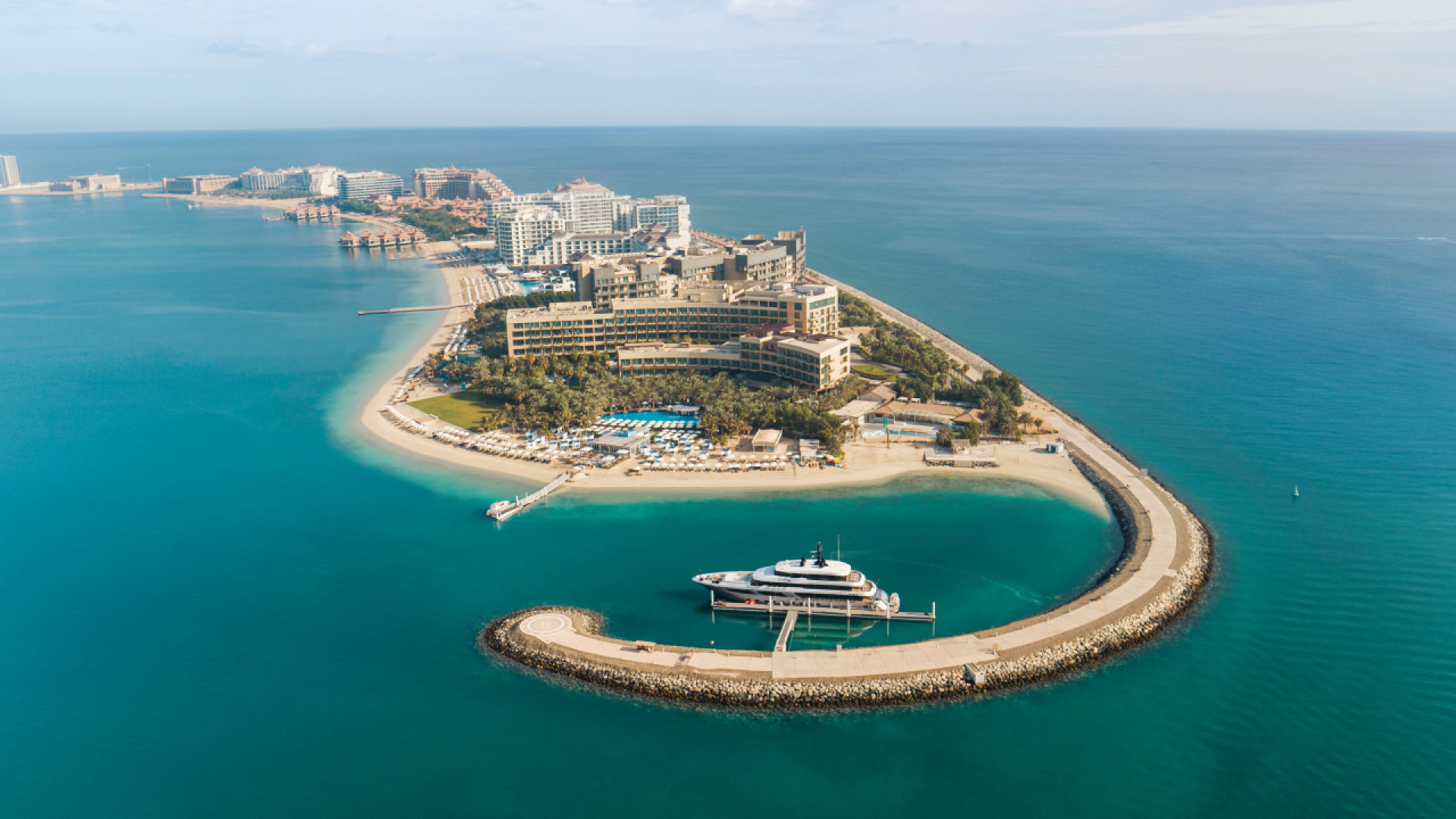 Уникальное расположение на острове Palm Jumeirah с панорамными видами и самым длинным пляжем (около 1 километра).