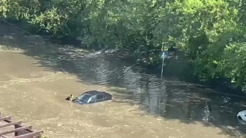 Ливень затопил улицы, спровоцировав в городе девятибалльные пробки. Некоторые машины ушли под воду почти по самую крышу.