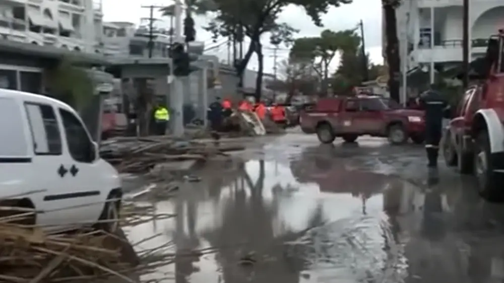 На острове Лемнос погибли два человека, жителей деревни Контиас призвали эвакуироваться из-за опасений, что дамба может переполниться.