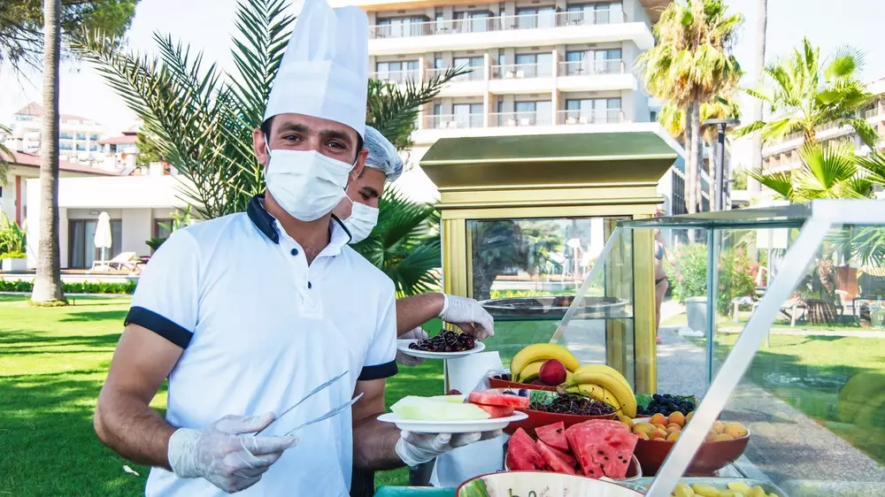 Из-за мер безопасности в связи с пандемией коронавируса в турецких отелях была внедрена система "порция на тарелке" - турист не может сам взять себе еды на шведском столе, а должен обращаться за помощью к официанту. Такие правила позволили отельерам значительно сэкономить.