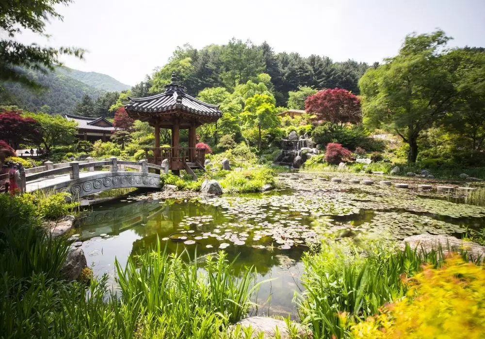 Истинно восточное место, дендрарий "Ачхим коё" (переводится как "Сад утреннего спокойствия") демонстрирует посетителям всю красоту и великолепие корейской природы. Здесь вы найдете несколько тематических садов, в которых собрано около тысячи разновидностей цветов и деревьев, среди которых не только очень редкие, но и абсолютно прекрасные. В дендрарии также часто снимают фильмы, сериалы и популярные передачи, поэтому будьте готовы не только к обилию иностранных туристов, но и к массе местных фанатов - поклонников корейской волны халлю.