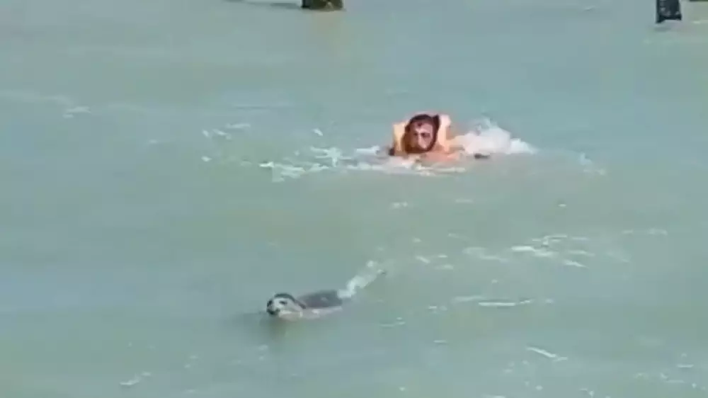 Тюлень напугал купающихся мужчин в Каспийском море. По данным СМИ, инцидент произошел в Азербайджане, передает Tengritravel.kz.