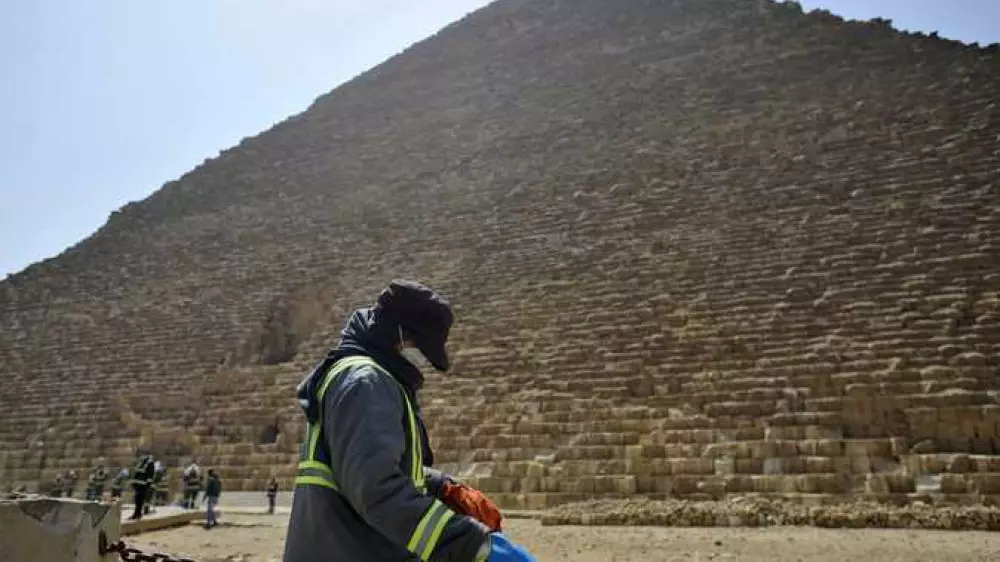 В комплекс пирамид входит пирамида Хеопса, являющаяся единственным из семи чудес света сооружением, сохранившимся в наше время. Санитарная обработка проводится под руководством министерства по делам древностей Египта. Рабочие в униформе распылили специальные препараты, дезинфицировали перила и деревянные дорожки, кассы и туристический центр при входе, пункт пропуска посетителей, рентгеновские аппараты и другие помещения. Материалы для очистки были утверждены министерством здравоохранения и народонаселения Египта.