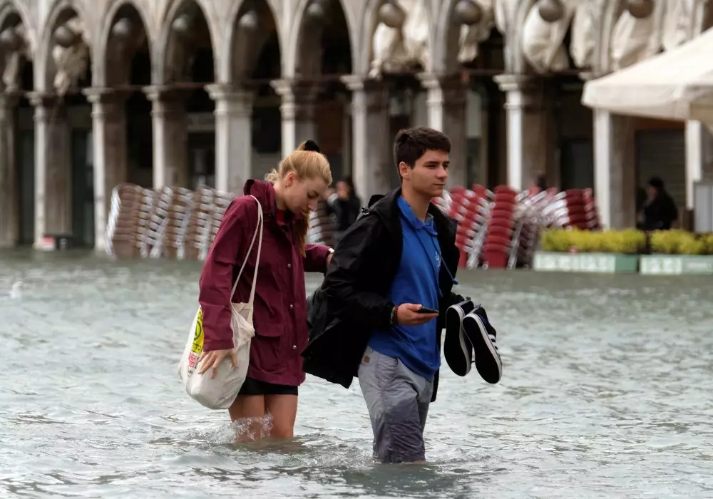 Венецианцы давно привыкли к этому природному феномену, который здесь называют "высокая вода". Речь идет о сезонном подъеме воды в Венецианской лагуне, который вызывает затопление значительной части города в период с начала ноября до конца января. Причиной наводнений в городе обычно становится нагон воды в Венецианскую лагуну из-за сильного ветра. Для борьбы с этим явлением в 2003 году началось строительство проекта MOSE, предусматривающего создание специального убирающегося барьера между лагуной и открытым морем. Барьер MOSE должен подниматься при нагоне воды выше уровня 110 сантиметров. В настоящее время его ввод в эксплуатацию намечен на 2020 год.