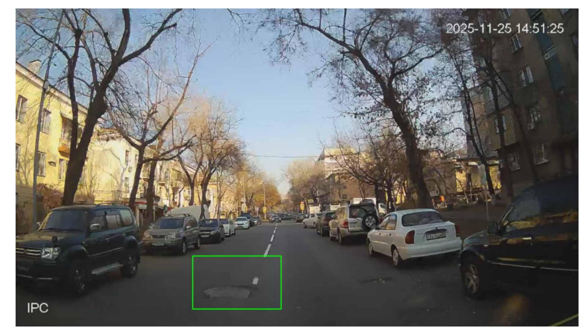 Она называется JolQal.ai и работает довольно просто. Сейчас по городу ездят 393 машины скорой помощи и автобуса, на которых установлены специальные видеорегистраторы, автоматически фиксирующие ямы, трещины и другие дефекты дорожного покрытия. Выглядит это вот так: