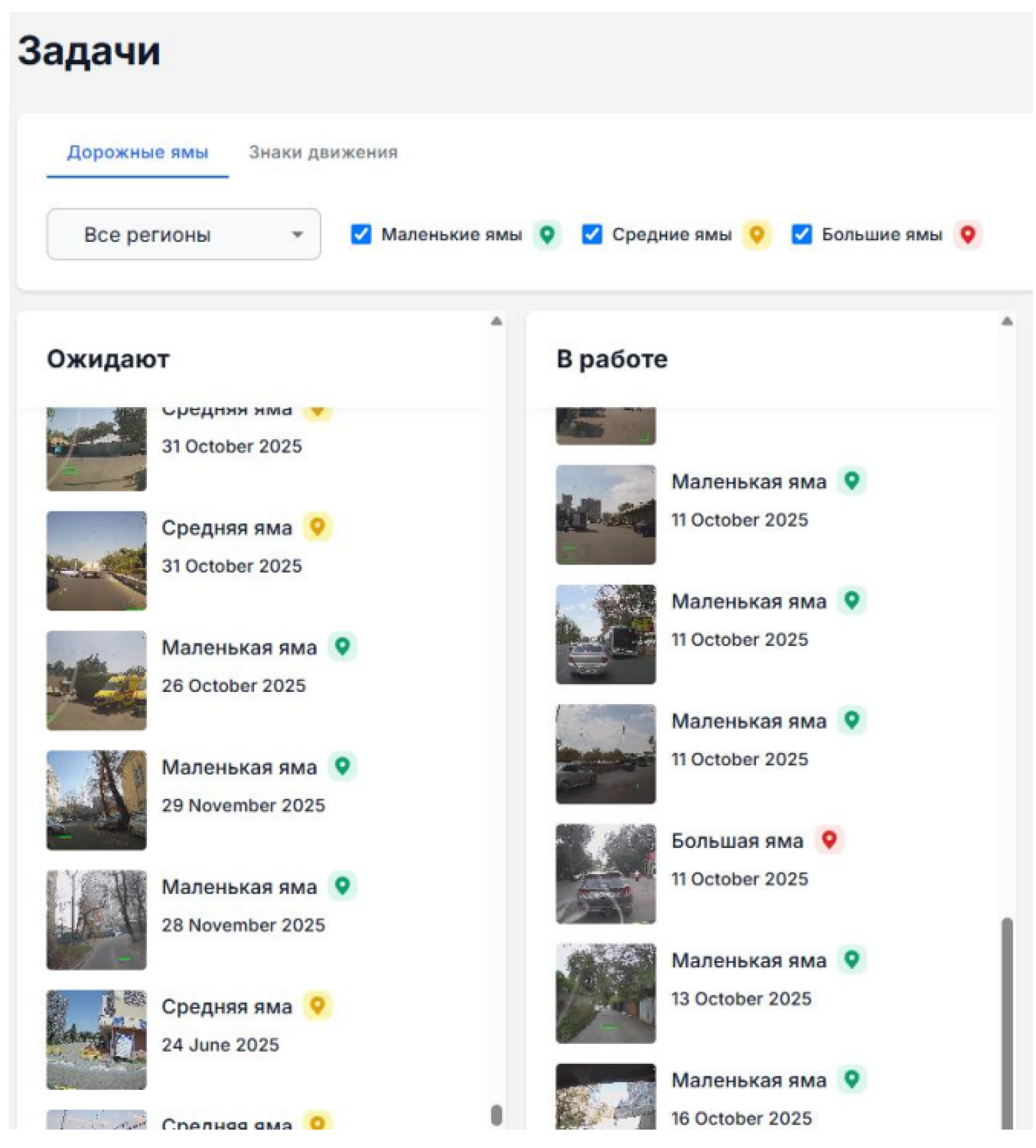 Также собирается отдельная база данных со списком всех зафиксированных дефектов — с разделением по типу проблемы.