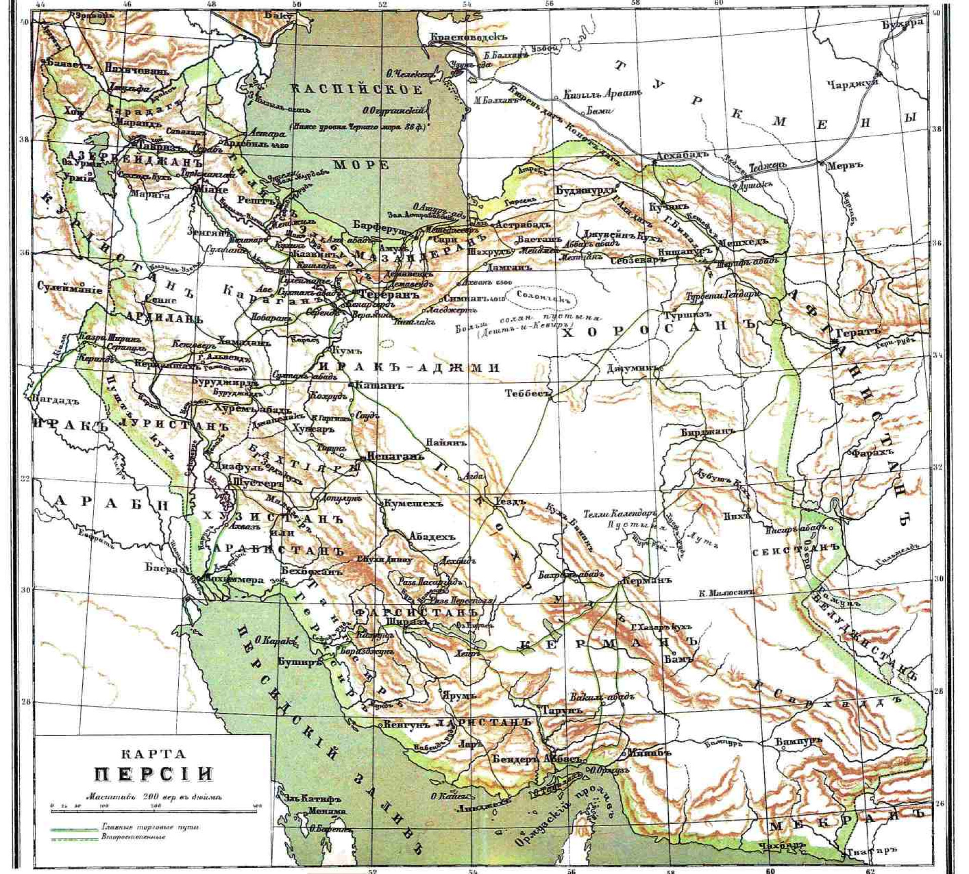Карта Персии в начале XX века. Иллюстрация из энциклопедии Брокгауза и Ефрона