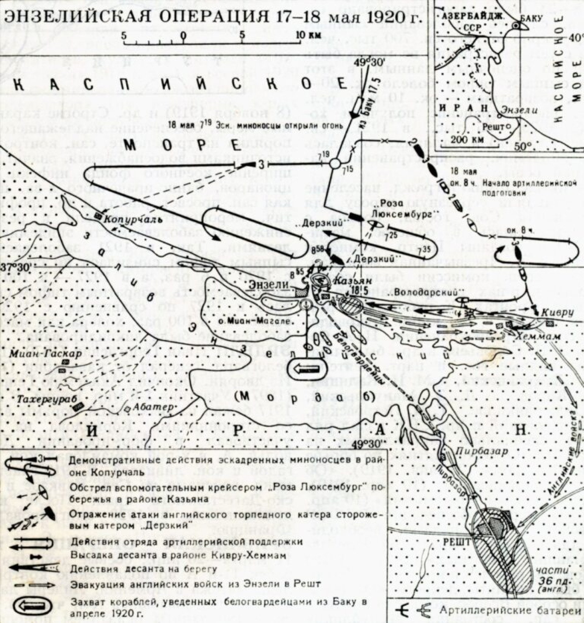 Энзелийская операция: высадка десанта. Источник: Гражданская война и военная интервенция в СССР. 1918–1922. Энциклопедия. М., 1987 (Warspot.ru)