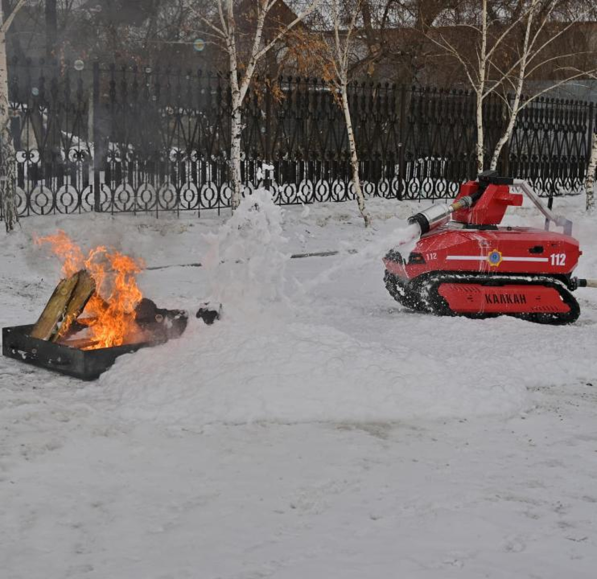 Кроме того, для Байханова устроили небольшое шоу с пожарным роботом. На сайте акимата указывается, что это опытный образец, который вызвал "особый интерес участников смотра". Можем их понять.