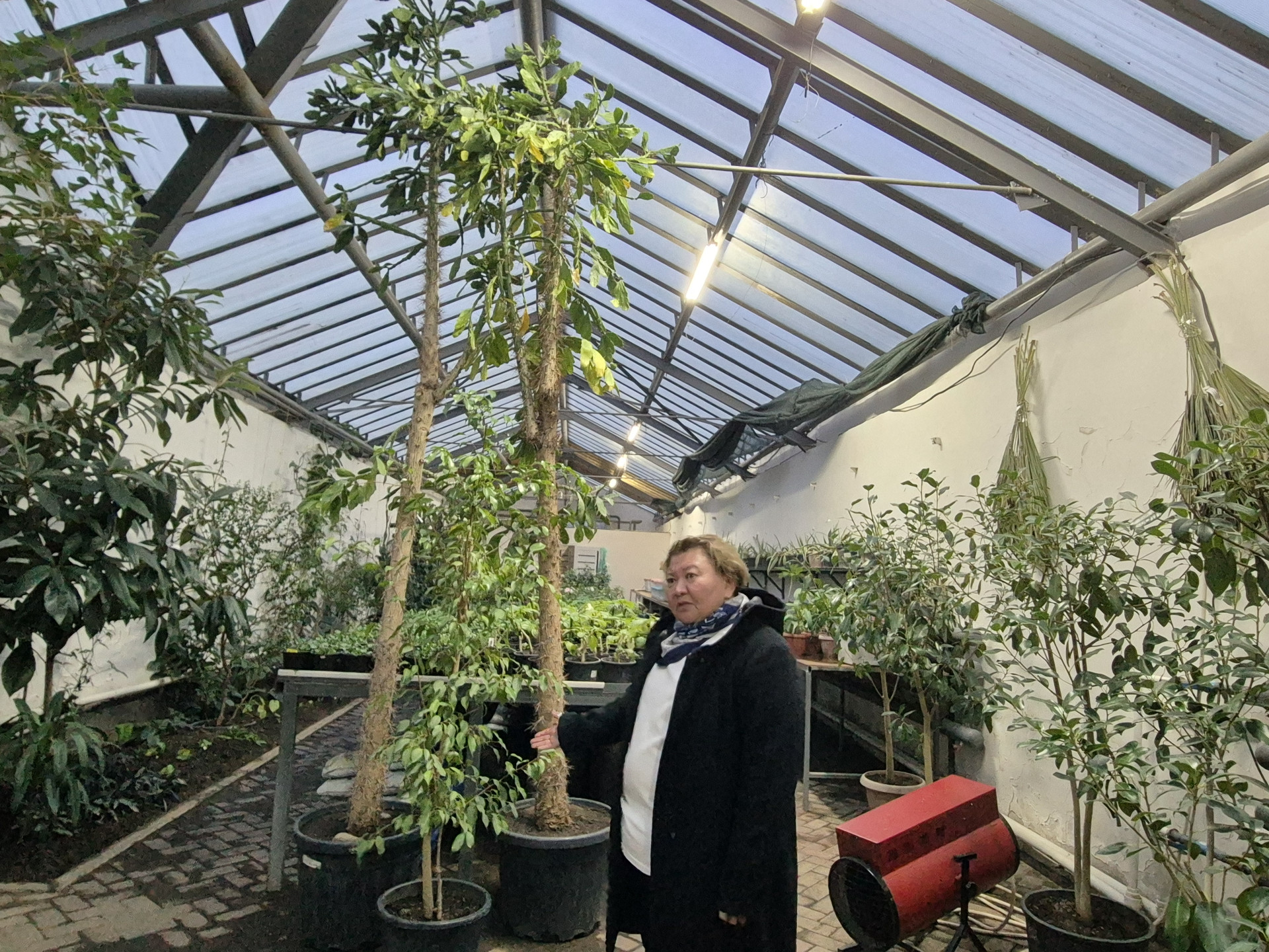 "Зимой мы всеми силами стараемся не допустить роста деревьев, чтобы макушки не упирались в потолок. Бесконечно обрезать их не можем, поэтому погружаем в "спячку". Поддерживаем тусклый свет и температуру воздуха +8-10 градусов", — рассказывает Шолпан Масалимова.