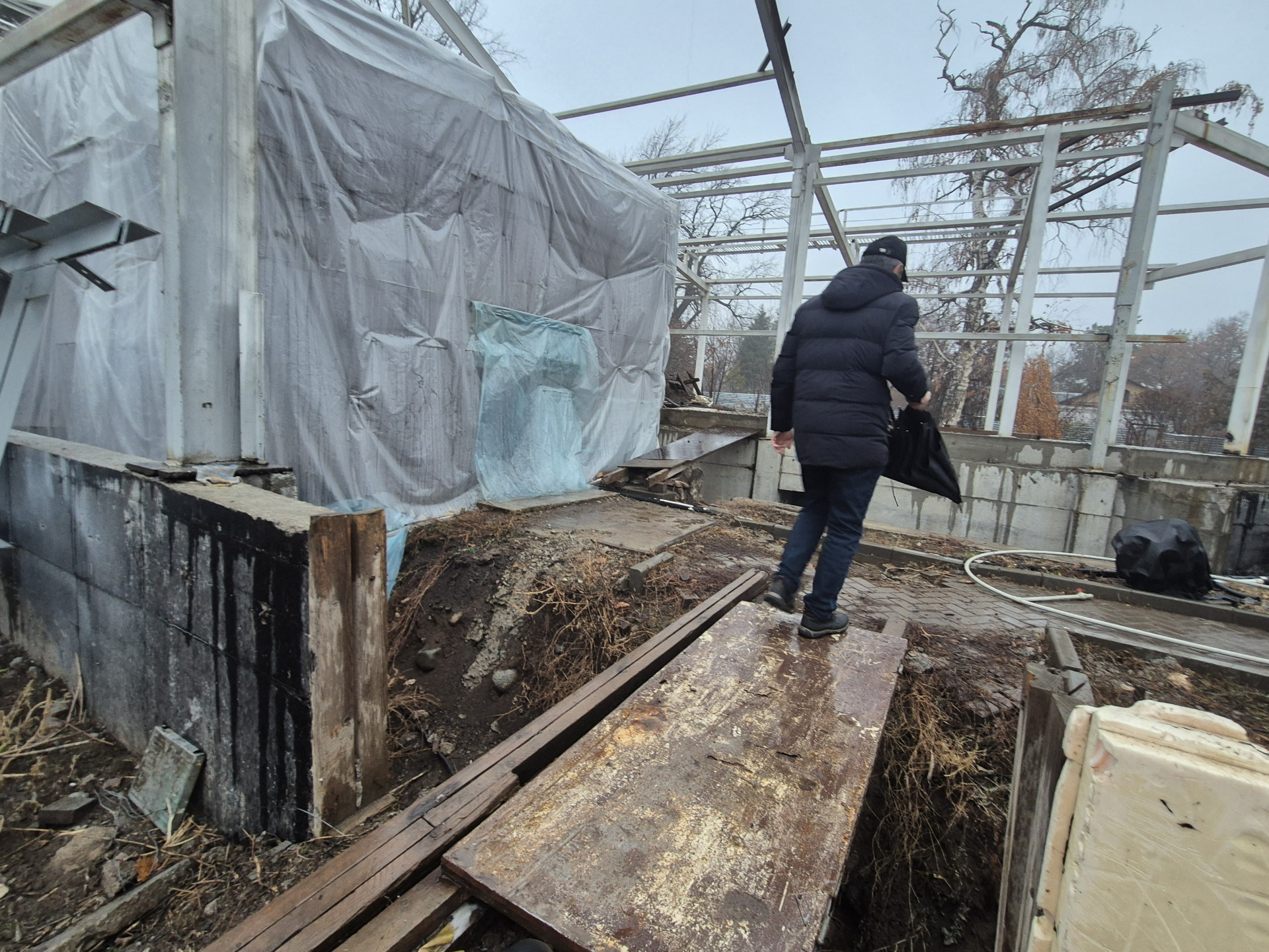 А позже, когда на Алматы обрушился ураганный ветер, один из каркасов накренился и его пришлось разобрать ради безопасности посетителей ботсада. И это был тот самый — третий — проблемный корпус.