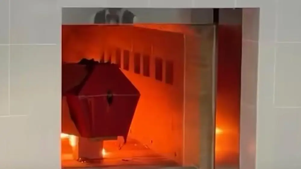 Сегодня специально для прессы проводят демонстрационное сжигание. Сотрудники крематория показывают, что гроб пуст, демонстрируют весь процесс и затем отправляют его в печь.