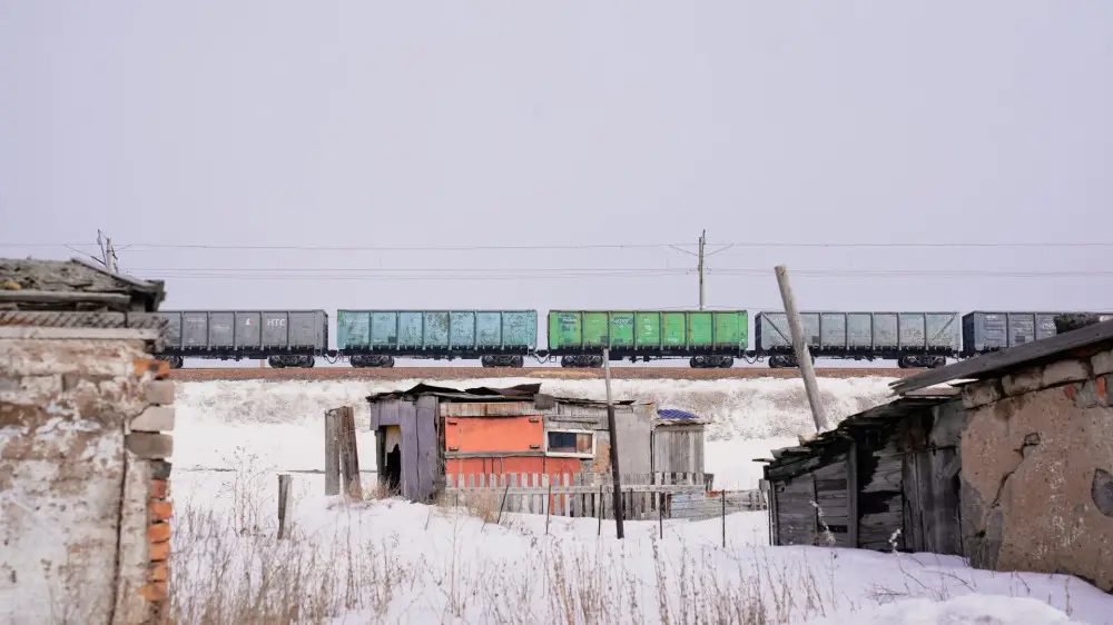 Поезд, проходящий мимо микрорайона на 804-м километреФото: ©️ Tengrinews.kz / Алимжан Аманжол