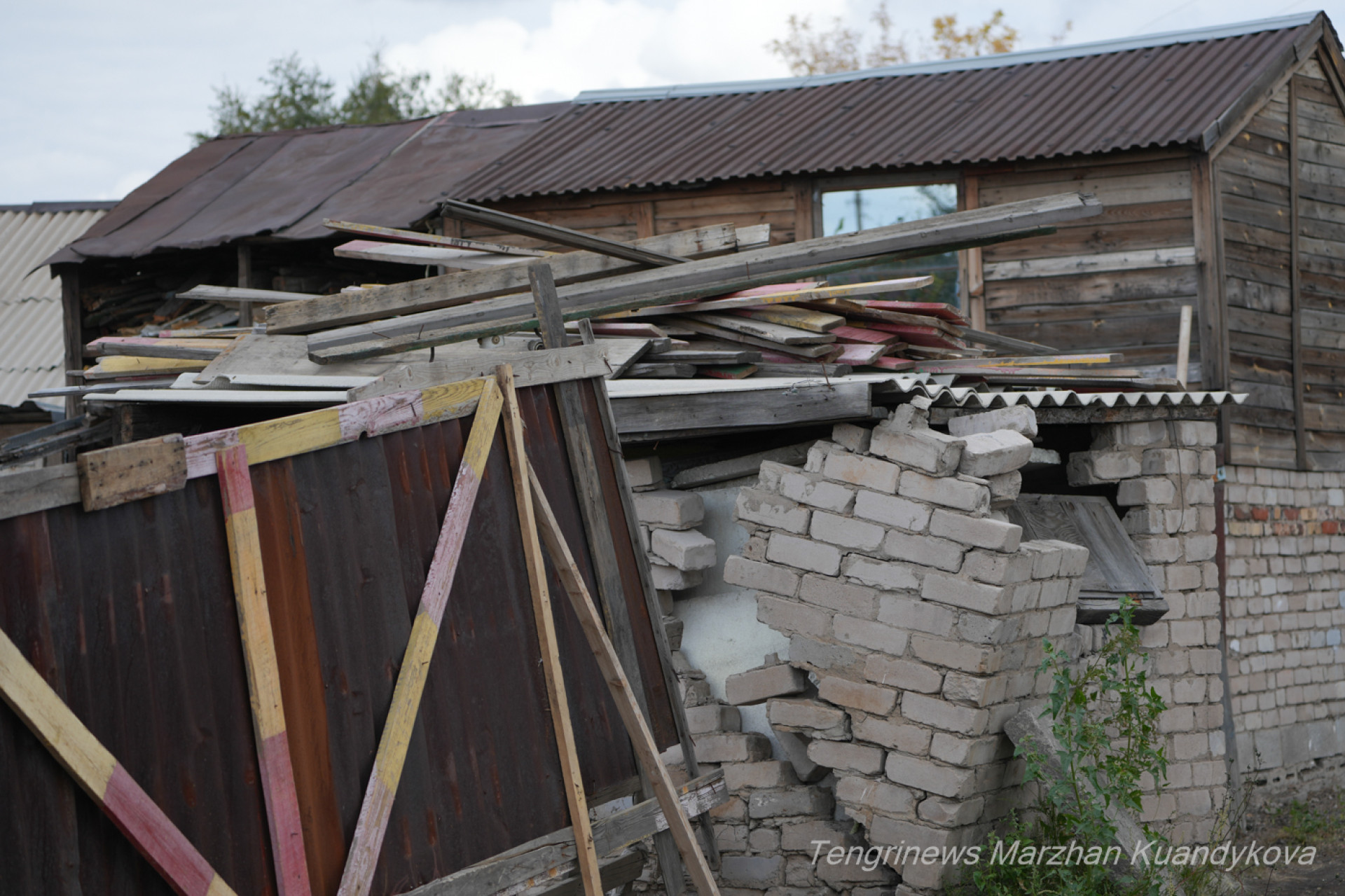 Местная жительница показывает нам фундамент дома соседей, который снесли. Она сноса так и не дождалась. Фото: ©️ Tengrinews.kz / Маржан Куандыкова