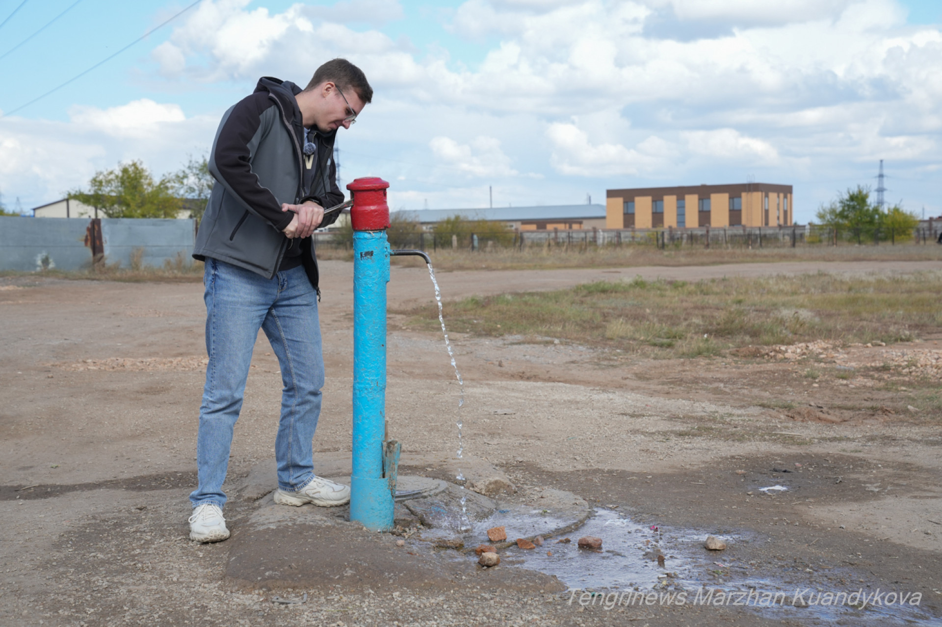 Журналист Иван Сухоруков у колонки в Ондирисе. Фото: ©️ Tengrinews.kz / Маржан Куандыкова