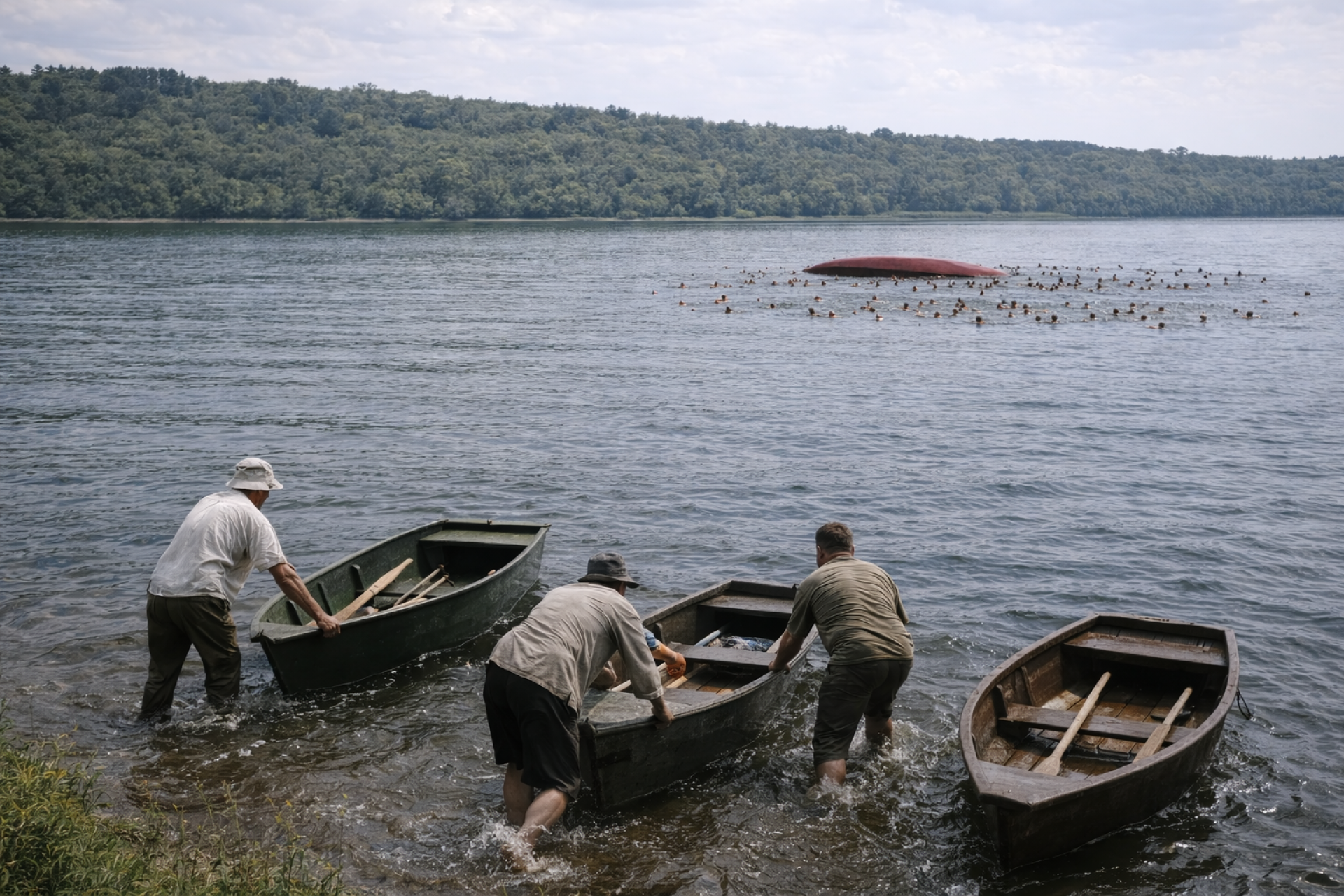 Но через какое-то время стало ясно, что в воде не все пассажиры — кто-то остался под перевернувшимся катером.