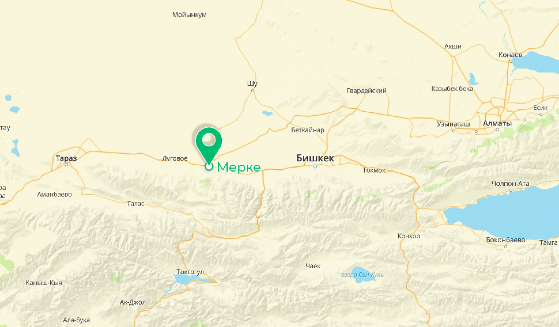 Итак, мы въезжаем в село Мерке — административный центр Меркенского района Жамбылской области.