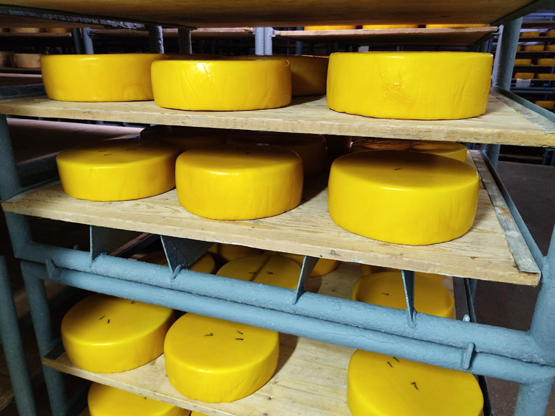 Вызревание сыра. На нем видны пластиковые цифры, которыми выкладывают дату производства. Фото: ©️ Tengrinews.kz / Юлия Колмогорова