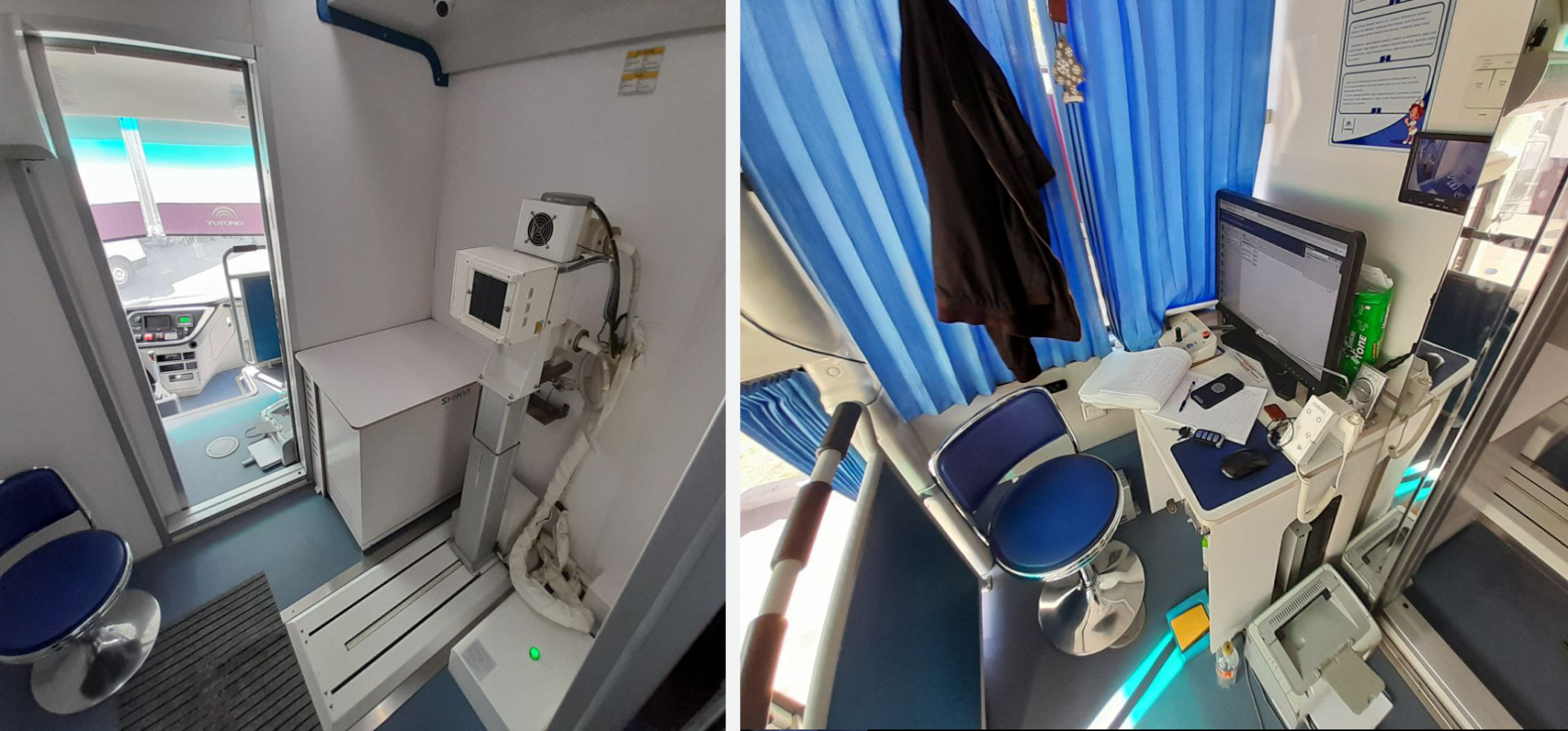 Внутри этого практически чудо-автобуса есть рентген, УЗИ-аппарат и другая аппаратура для диагностики: