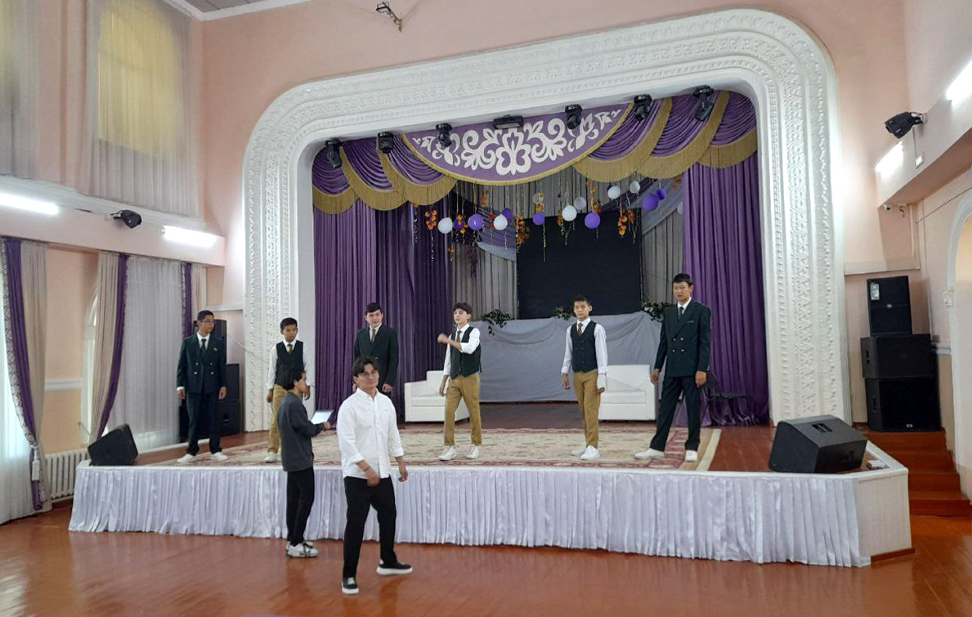 А эту школу мы увидели случайно, вечером, за час до отъезда в Алматы. На закате здание выглядело очень красиво, и мы стали внимательно разглядывать его через забор, обсуждая, как хорошо было бы снять, что там внутри: