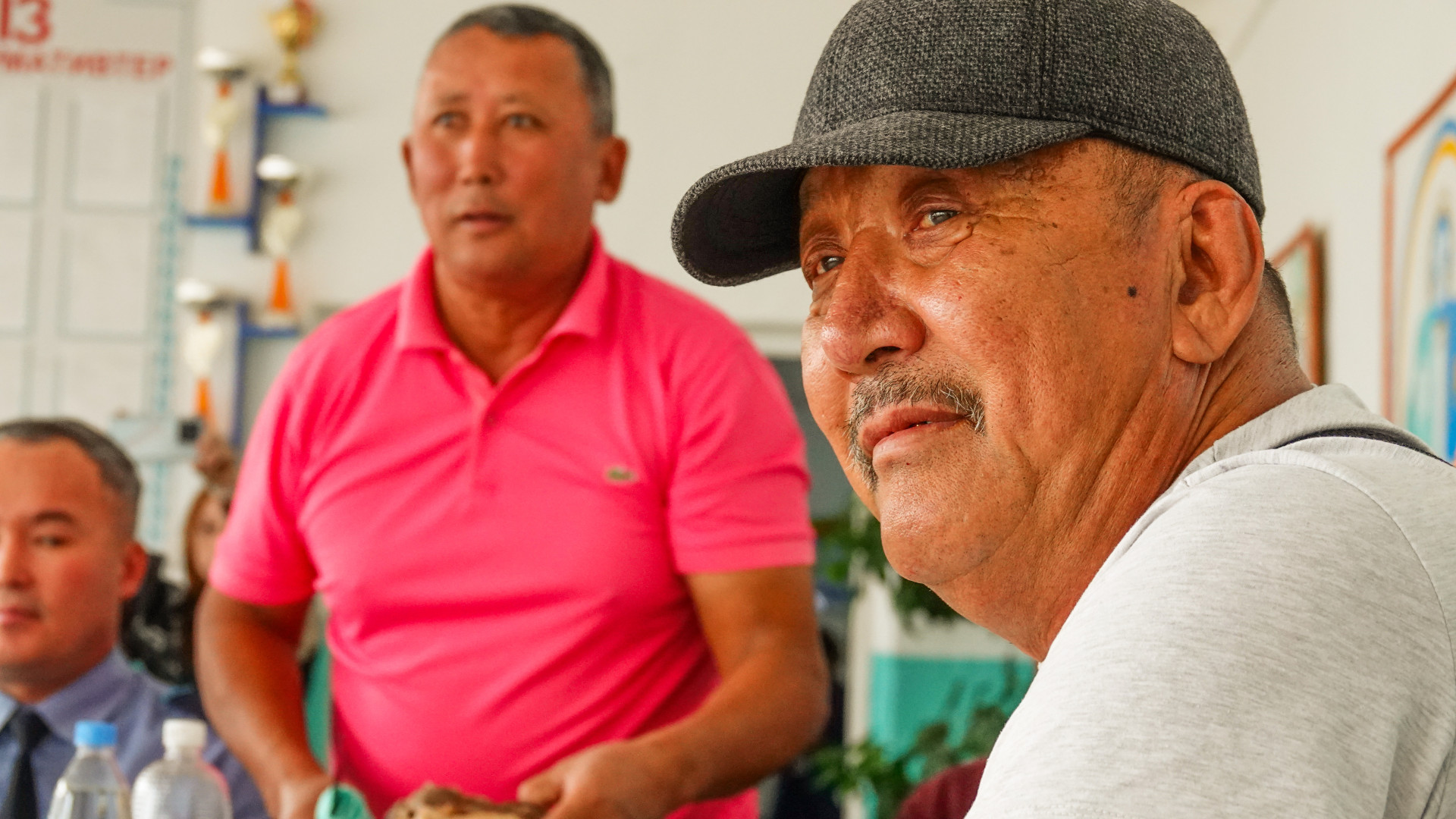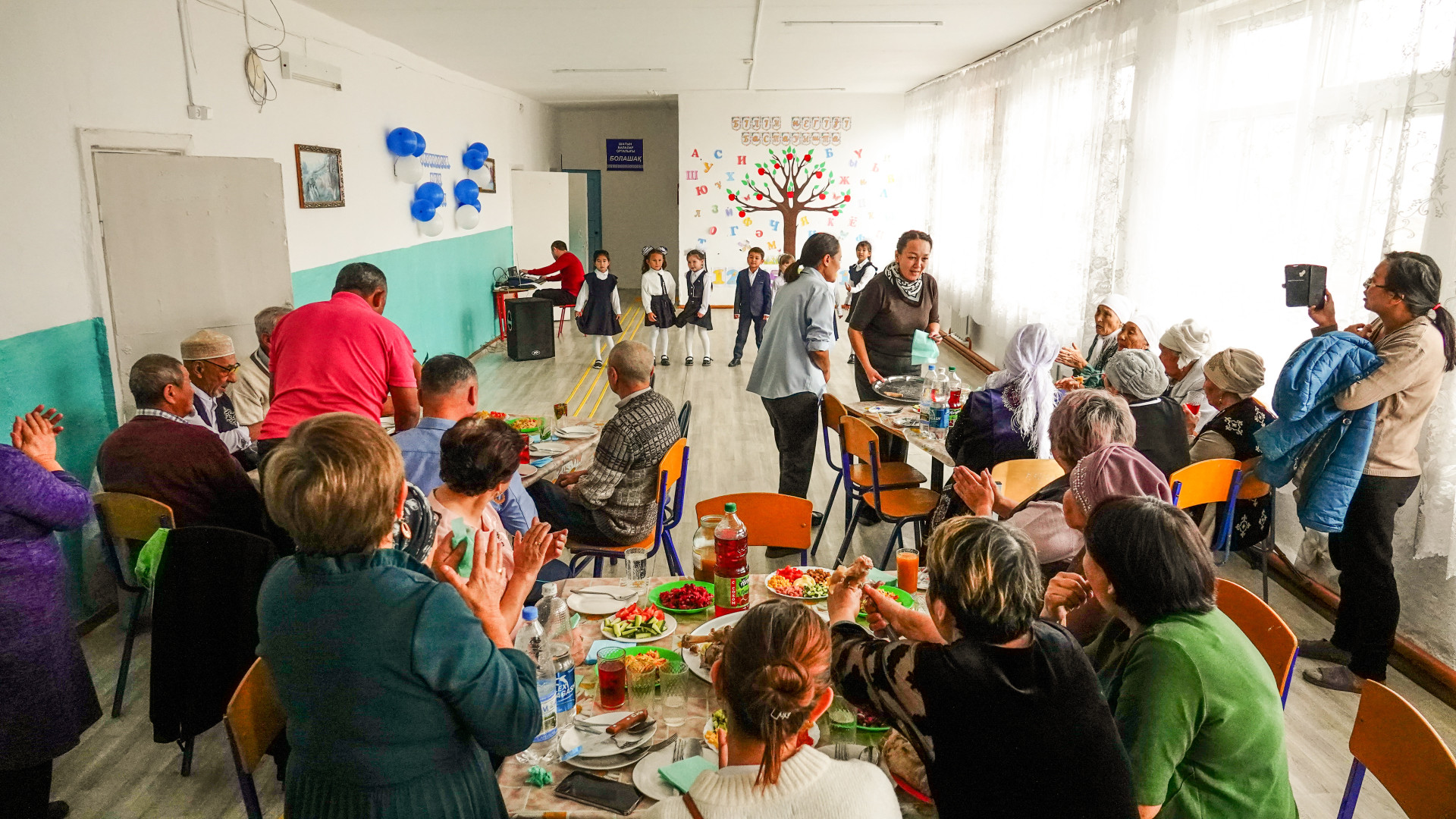 Для пенсионеров Далабая праздник устроили в школьной столовой. Душевно, по старинке, с той самой музыкой между торжественными словами, которую раньше включали на всех школьных мероприятиях.
